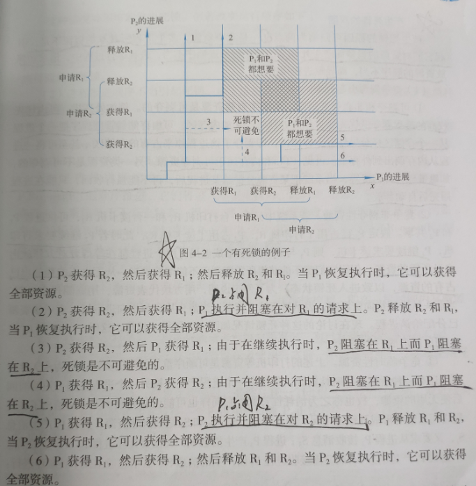 而R1在P1手里,未释放,R2在P2手里,未释放)