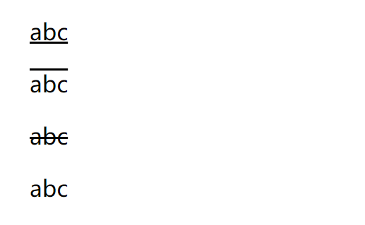 text-decoration属性,用来给文本添加各 种修饰。通过它可以为文本的上方、下方 或者中间添加线条。- 可选值: