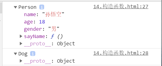 可以看出,使用工厂方法创建的对象,使用的构造函数都是Object,所以创建的对象都是Object这个类型,就导致我们无法区分出多种不同类型的对象,因此可以通过构造函数来进行区分,不同类型的对象