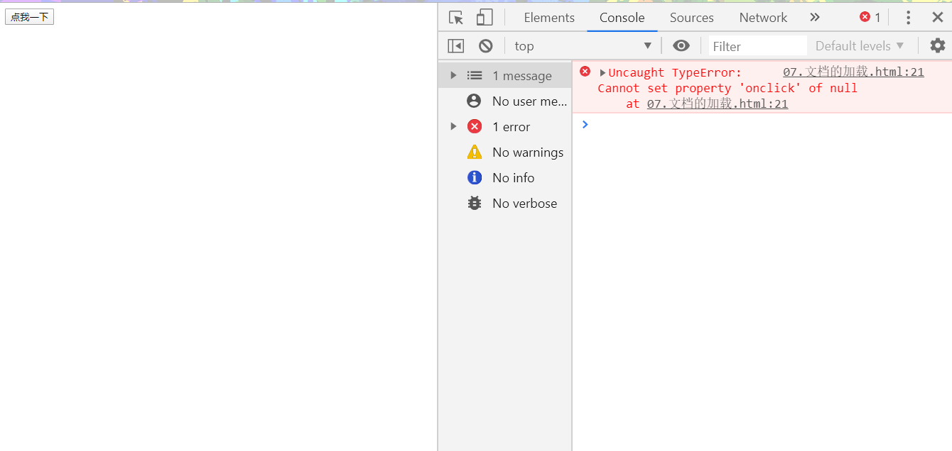 浏览器在加载一个页面时,是按照自上向下的顺序加载的,读取到一行就运行一行,如果将script标签写到页面的上边,在代码执行时,页面还没有加载,页面没有加载DOM对象也没有加载,则会导致无法获取到DOM对象