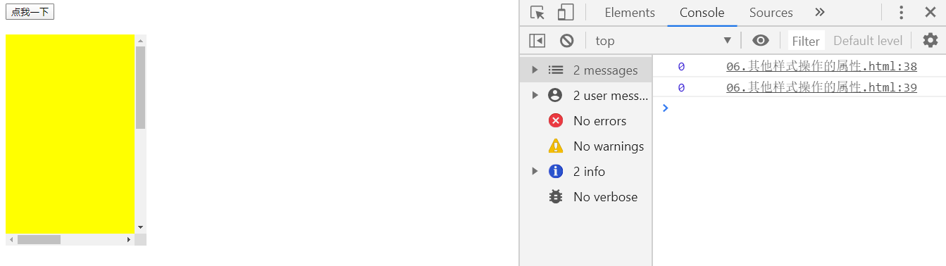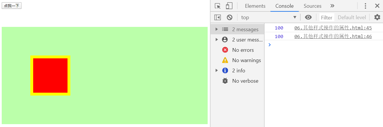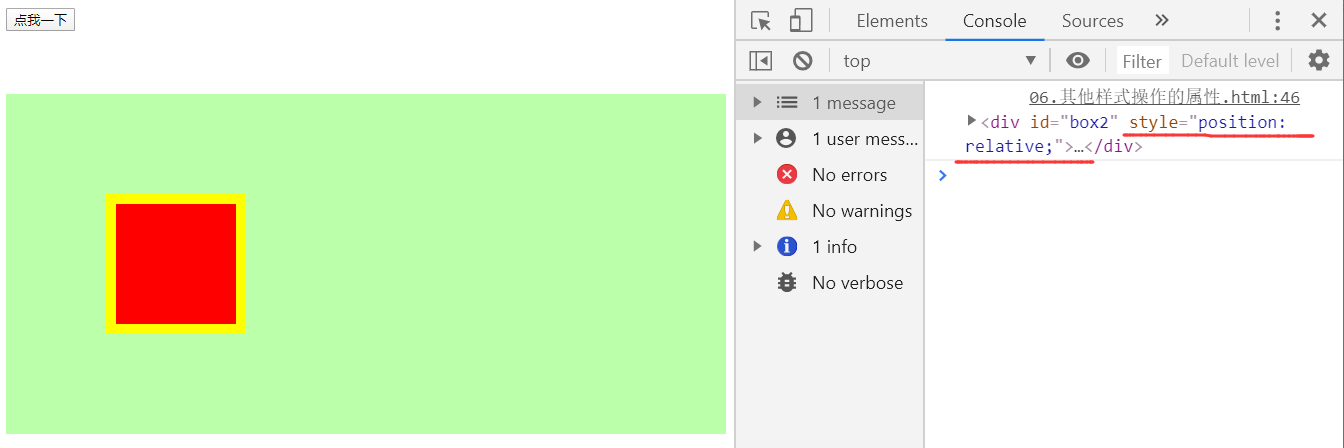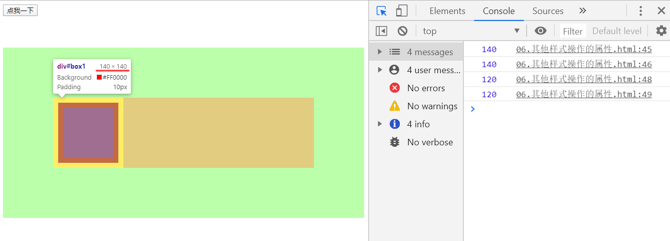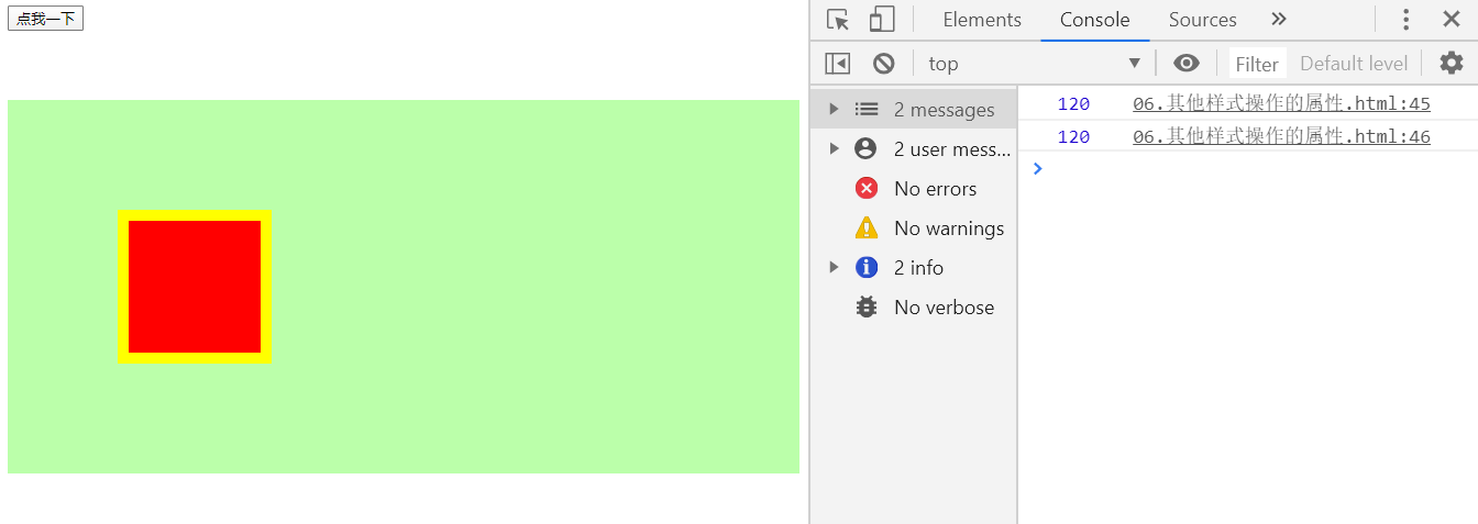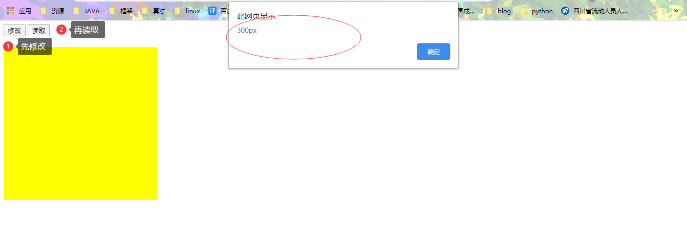 可以发现,直接点击读取,是无法读取到样式表里的样式属性值的,而通过第一个按钮,修改了内联样式之后,在读取,即可读取到元素的属性值