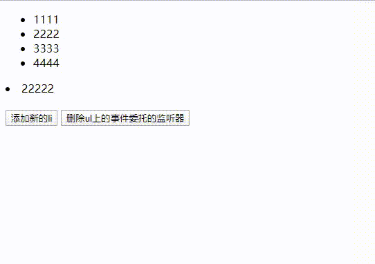 <button id="btn2">删除ul上的事件委托的监听器</button>