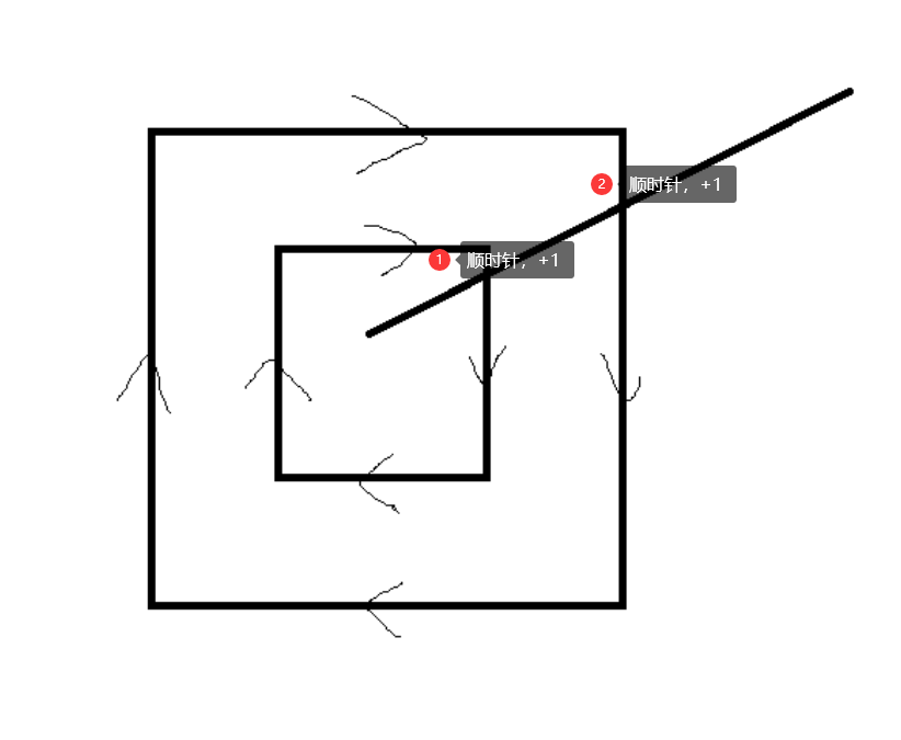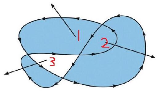 从填充区域拉一根线到外部,相交的线,如果是顺时针环绕的,则+1,反之-1,最后判断得到数字是否为0,如果非零则填充,为0则不填充