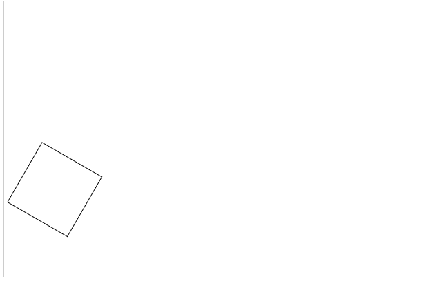 <body> <canvas width="600" height="400"></canvas> <script> var myCanvas = document.querySelector('canvas'); var ctx = myCanvas.getContext('2d'); ctx.rotate(Math.PI / 6); ctx.strokeRect(150, 150, 100, 100);