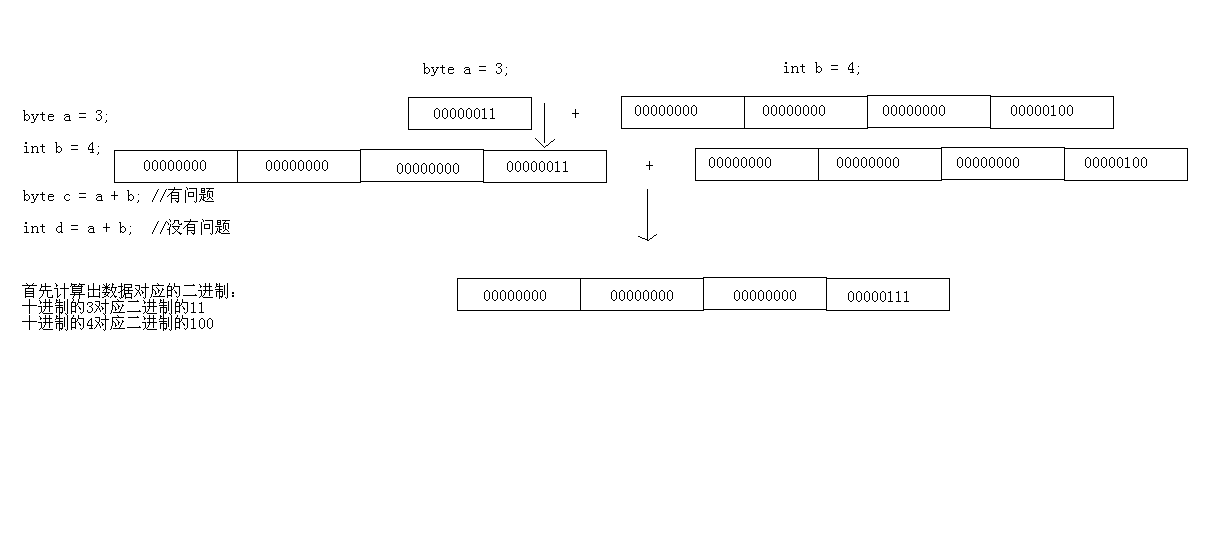 b = 3 + 4; // 常量,先把结果计算出来,然后看是否在byte的范围内,如果在就不报错。